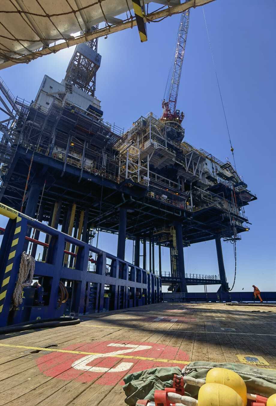 La Gaviota is a former offshore gas production facility converted into a strategic natural gas storage platform, managed by Enagás. Situated 8 km off Bermeo (Bizkaia), it plays a critical role in Spain’s energy security by providing seasonal storage capacity and demand peak management. Since 2022, BERTHA B has ensured uninterrupted offshore support for the platform. She remains on station 24/7 near the platform, departing only for scheduled fortnightly port calls to Bermeo.